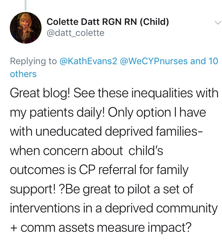 Viv Bennett @VivJBennett and the team at Public Health England have done so much sustained work on the ‘Healthy Child Programme’ https://vivbennett.blog.gov.uk/tag/healthy-child-programme/ that offers a strong foundation as we step forward and onwards to truly transform child health outcomes across the whole system.