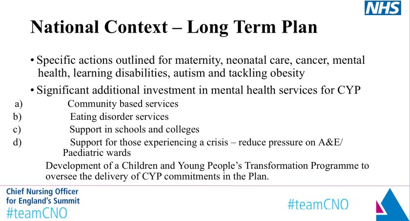 Sarah-Jane Marsh @BWCHBoss as magician in chief (or in @NHSEngland speak ‘the chair’) asked us to reflect on why we were there. For me it was a simple response, putting a focus on Child Health is what Children, Young People and families/carers have asked us to do, it’s what will help translate the wonderful work in the National Service Framework (2004) https://www.gov.uk/government/publications/national-service-framework-children-young-people-and-maternity-services, Children’s Outcomes Forum (2014) work https://assets.publishing.service.gov.uk/government/uploads/system/uploads/attachment_data/file/410482/CYPHOF_Report_2014-15.pdf along with contemporary evidence provided by the Royal College of Paediatrics and Child Health (RCPCH) https://www.rcpch.ac.uk/resources/state-child-health-england-two-years, amongst others that informed the CYP chapter in the NHS Longterm plan so that we can achieve better health outcomes for and with every child across the country, importantly focusing on those who are most vulnerable. Having a national ‘ask’ is a powerful driver for change at local, Sustainability and Transformation (STP)/Integrated Care System (ICS) levels and across regional patches.